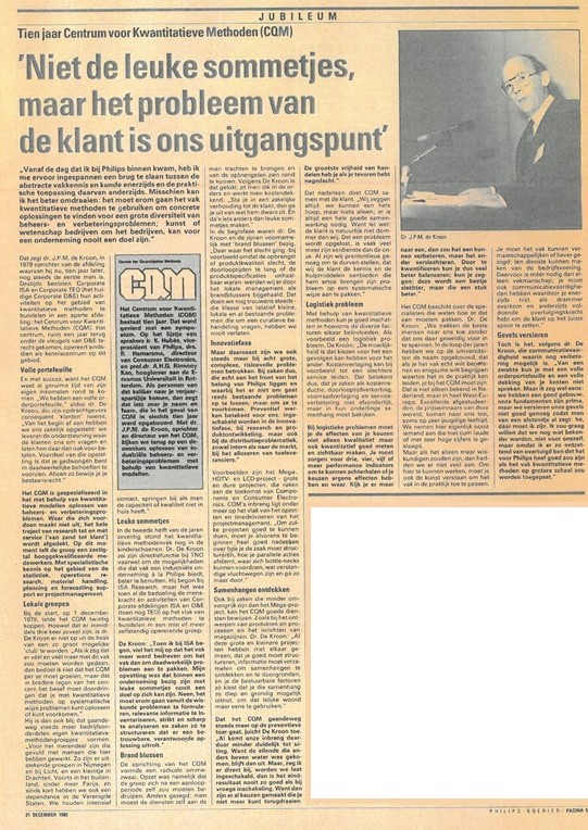 In 1979, Philips needed a department that could solve control and improvement problems using quantitative methods. Today, we see the same strategic challenge in companies struggling with model based decision-making, AI, supply chain optimization or predictive modelling. The tools have changed, but the challenge remains: how do you ensure that technology serves the real business problem?