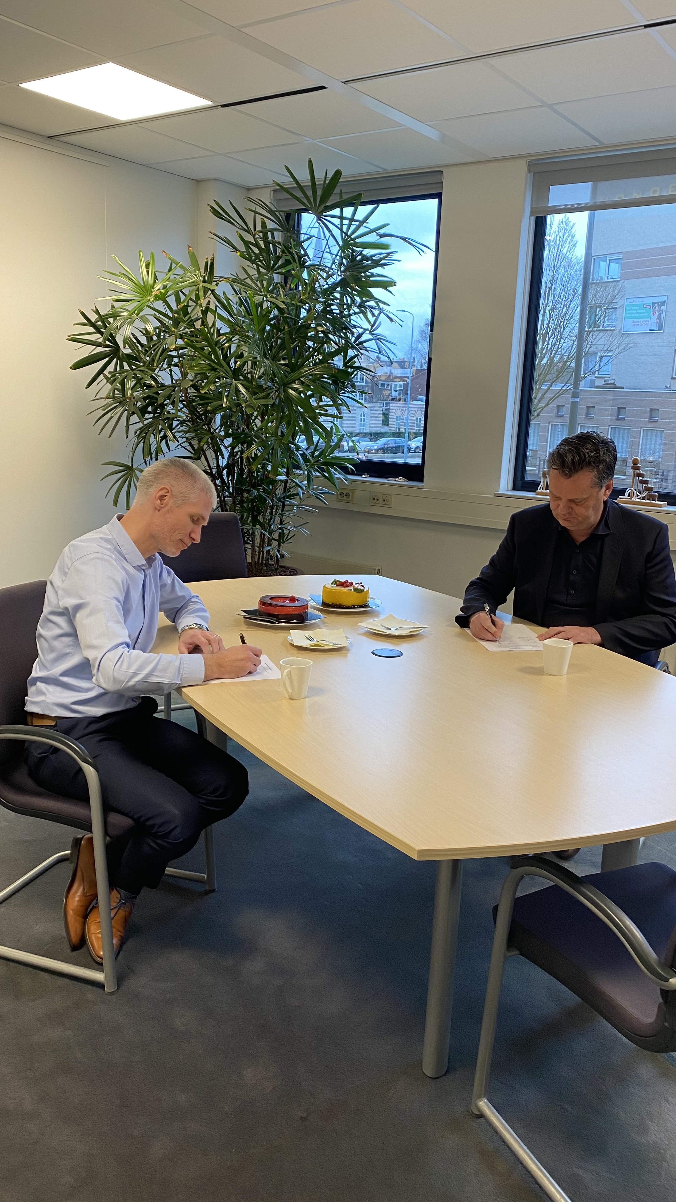 Wat een mooie afsluiting van dit fijne samenwerkingsgesprek. Het is wel duidelijk dat de heren al lange tijd met elkaar terug gaan, dat ze elkaar door en door kennen, goed op elkaar zijn ingespeeld en elkaar tegelijkertijd wel scherp houden. Klinkt als een perfecte relatie. Het is niet voor niets dat de samenwerkingsovereenkomst verlengd en feestelijk gevierd is (check de foto’s voor het resultaat). Op naar de volgende 30 jaar!