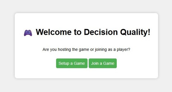 Inmiddels beschikbaar via GitHub: Decision Quality Game.