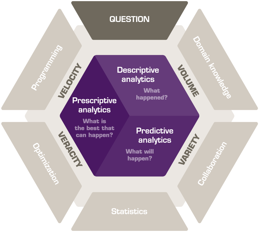 Binnen Data Science wordt typisch onderscheid gemaakt tussen drie soorten vragen. Wanneer we in het verleden kijken, met als doel om te achterhalen wat er is gebeurd en waardoor dit werd veroorzaakt, spreken we van descriptive analytics. Bij predictive analytics, daarentegen, proberen we juist zo goed mogelijk te voorspellen wat er in de toekomst zal gebeuren. Tot slot kun je de toekomst beïnvloeden door met slimme keuzes een zo gunstig mogelijk situatie te creëren middels prescriptive analytics. Met simulatie- en optimalisatie-technieken is het mogelijk om diverse toekomstscenario’s te evalueren, en de beste te identificeren. Binnen CQM hebben we niet alleen veel ervaring met het describe- en predict-deel, maar zeker ook met prescribe-vraagstukken.