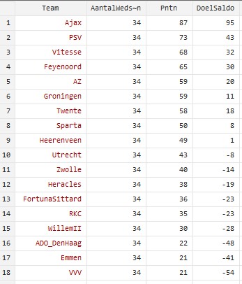 We zien in Tabel 1 dat Ajax veruit de sterkste is en VVV de zwakste.