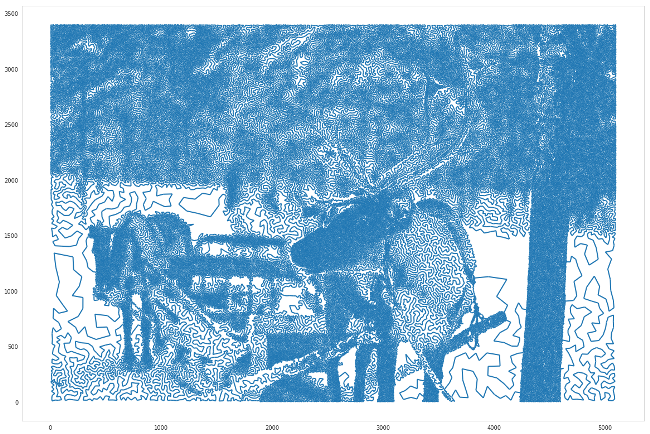 Als we de 200.000 steden grafisch weergeven krijgen we het volgende toepasselijke plaatje: