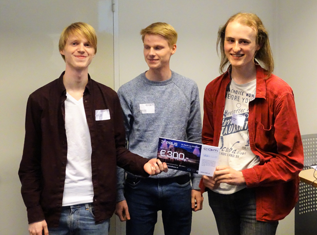 Op de tweede plek eindigden Thomas Ehrencron, Mike de Vries en Freek Henstra van team OptiThoryhopti (Universiteit Utrecht).