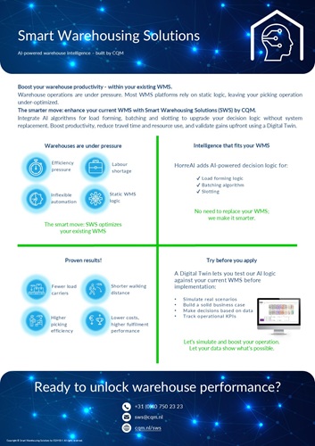 Smart Warehousing Solutions (SWS) van CQM brengt daar verandering in.